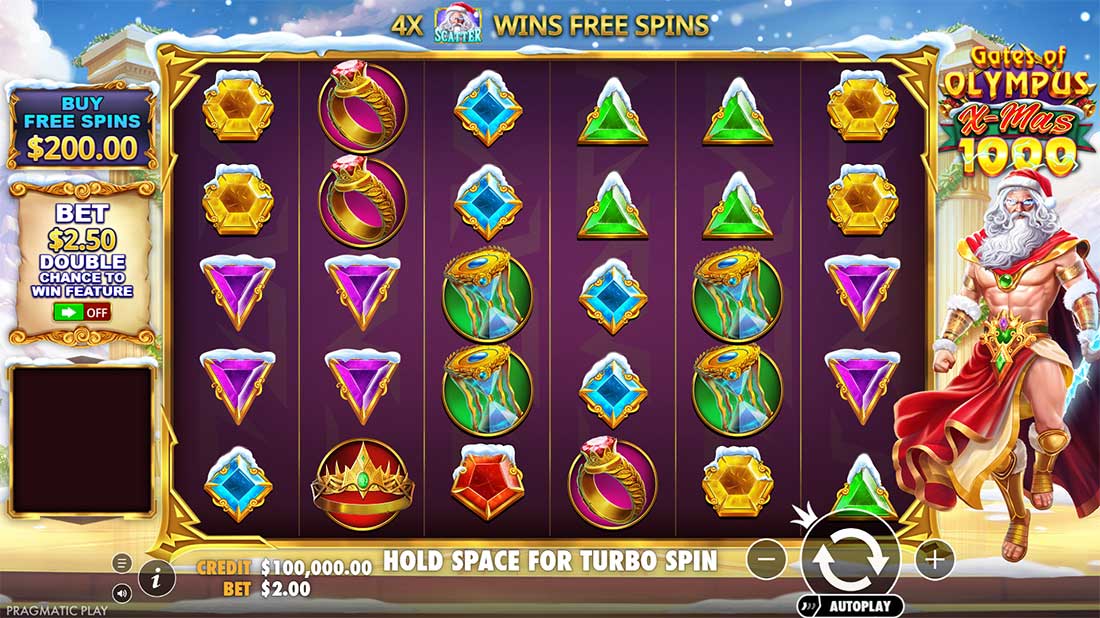 Pragmatic Play released Gates of Olympus Xmas 1000 in 2024 as a festive twist on one of its most popular titles. This online slot features high volatility, an RTP of 96.50%, and a max win of 10,000× your stake. With tumbling reels, multipliers, and free spins, it delivers thrilling bonus features and strong jackpot potential. Play free slots online and celebrate Christmas with Zeus in style.