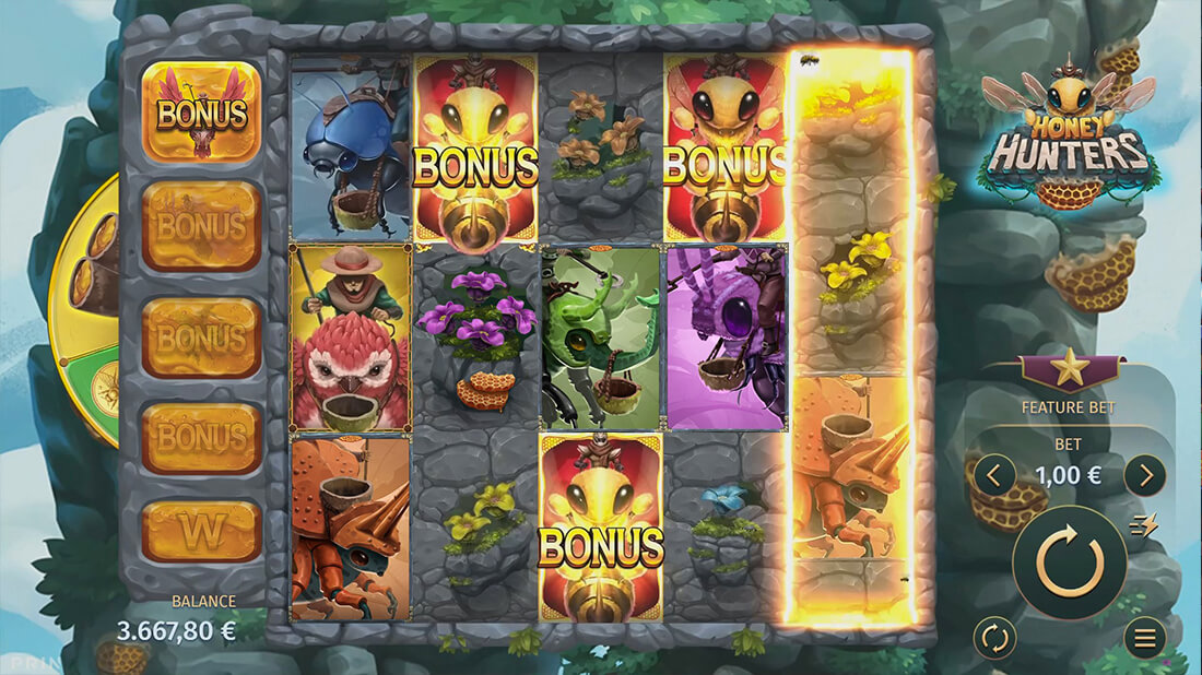 Players can achieve a maximum win of up to 10000 the stake in Honey Hunters, offering the chance for significant payouts.