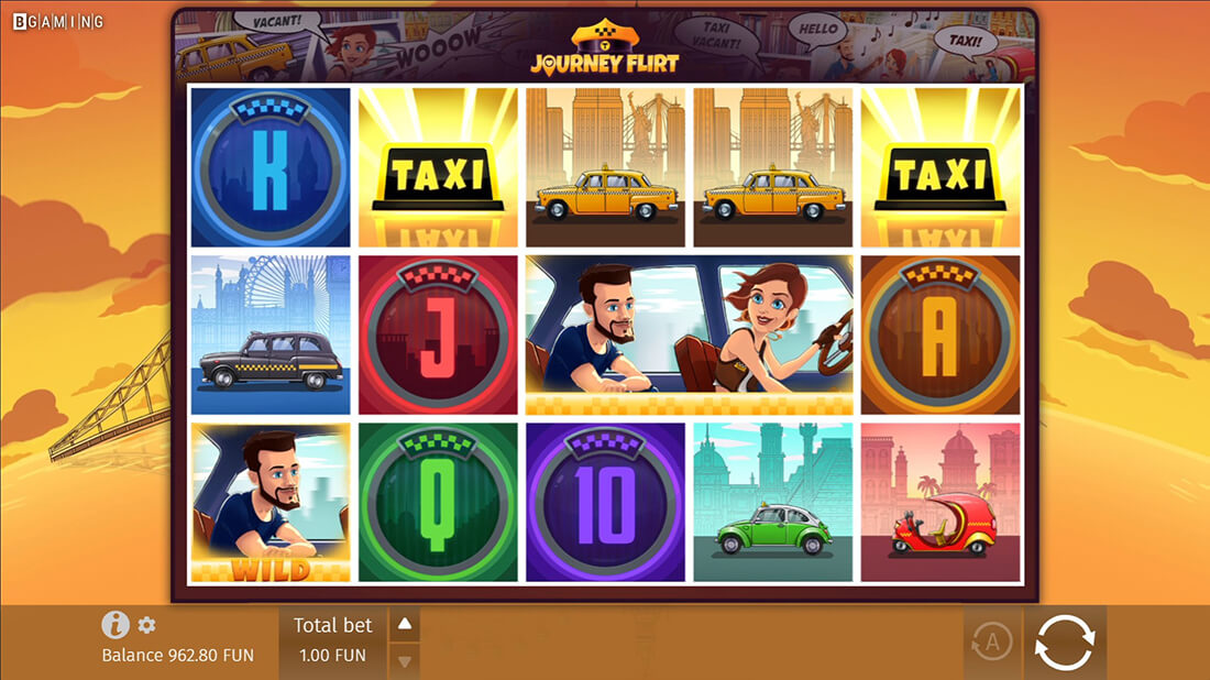 Journey Flirt is a fun online slot title by BGaming, released on October 4, 2019. It whisks the players away on a romantic tour of four renowned cities: Havana, Mexico City, New York, and London. Played across a 5x3 reel set with 243 paylines, Journey Flirt is an engaging slot title with diverse bonus features and vivid visuals. You can enjoy the game at Stake.