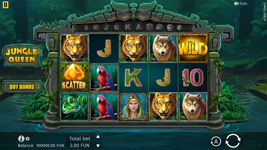 Animal-themed icons such as tigers, wolves, parrots, snakes, and the regal Jungle Queen symbol deliver higher multipliers—up to 25× for landing five of a kind.