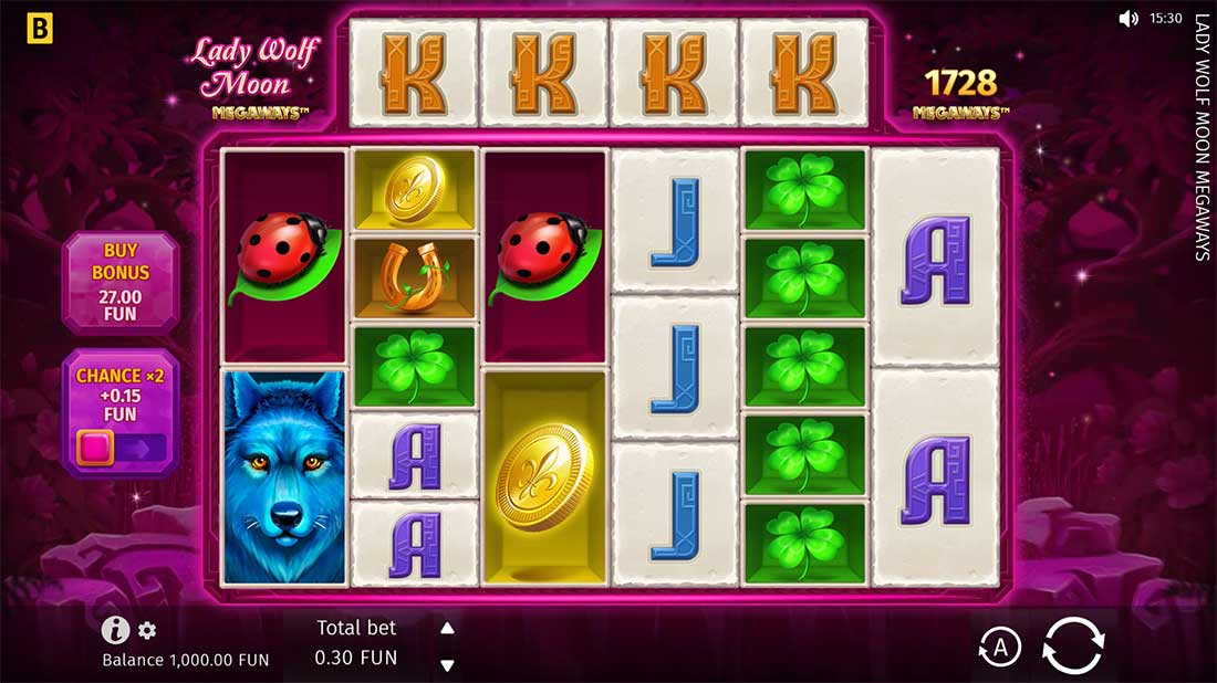 The Lady Wolf Moon Megaways slot captures the mystical atmosphere of moonlit nights, fortune, and enchantment. The design includes the Wolf as a spiritual companion, the Lady of the Moon as the star of the game, and glowing crystal orbs, lucky charms, and magical symbols filling the reels. The purple and blue color palette creates a magical feeling, while the soundtrack enhances the mystical theme, making this slot both relaxing and exciting.