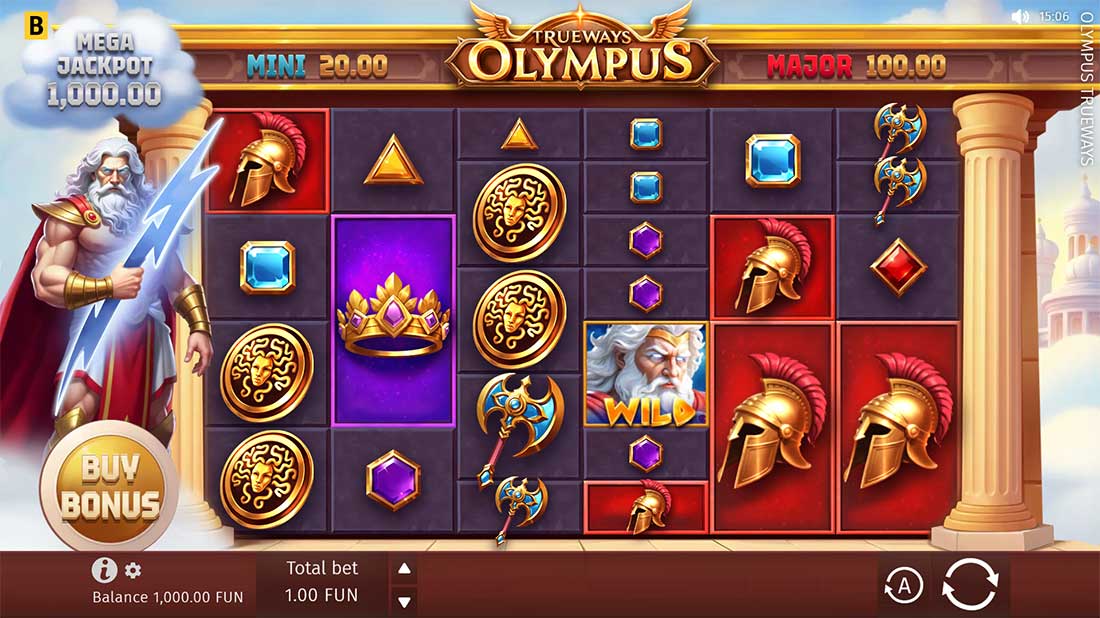 Olympus TRUEWAYS is a high-volatility, Greek-mythology-themed slot from BGaming, released on May 21, 2025. Set atop Mount Olympus, the game boasts a dynamic 6-reel layout with changing rows (2–8), powered by the TRUEWAYS™ engine to deliver up to 262,144 ways to win. With an RTP of approximately 96.84%, a maximum payout of 5,000× your stake, and intense bonus mechanics, it targets players who enjoy feature-rich slots and jackpot-style thrills.