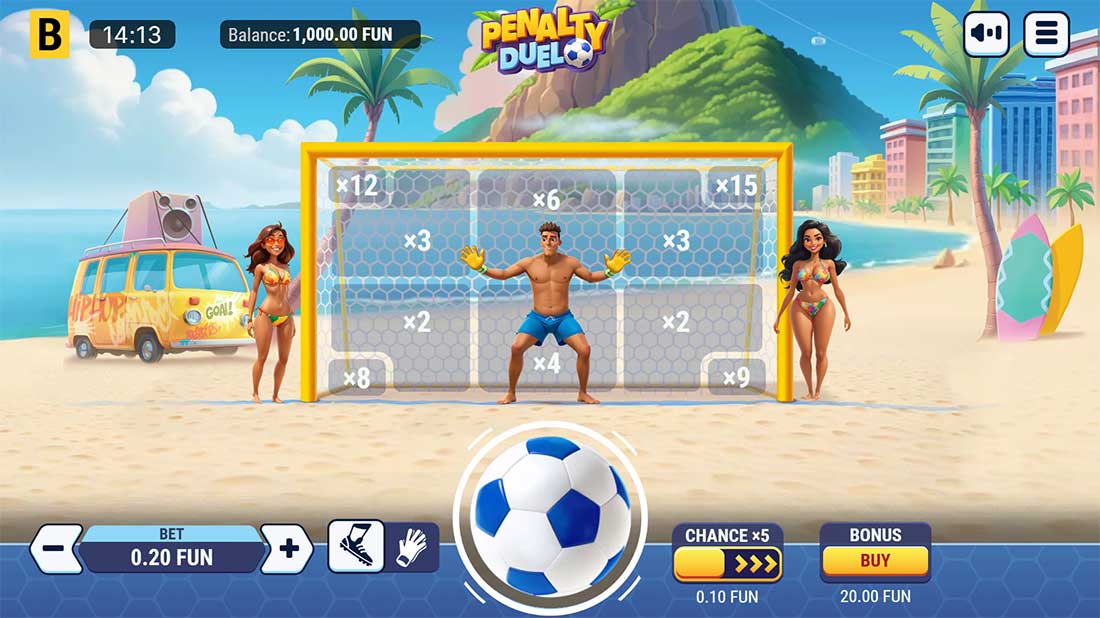Penalty Duel is a casual, medium-volatility instant-win game from BGaming, released on July 3, 2025. Set on a sunny beach, it places players in the middle of an energetic penalty shootout, letting you choose to play either as the striker or the goalkeeper. With an RTP of 96.14% and a maximum win of up to 4,860× your stake, this is a fun, fast-paced game ideal for quick sessions.