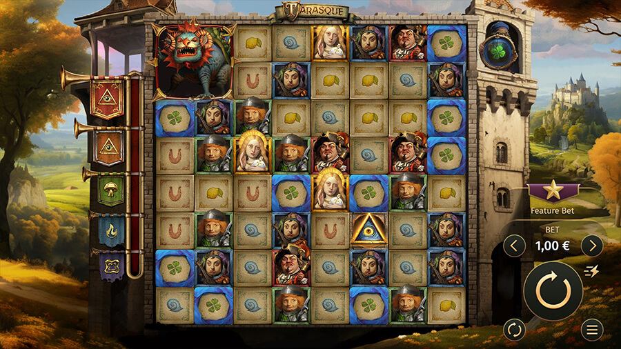 The payouts in Tarasque are pretty nice, though it looks like the RTP of 96.30% is not something super impressive. The symbol of the game are based on icons, and the high-value combos can get you higher winnings. Wilds and scatters belong to the category of special symbols, which are responsible for initiating bonus games and increasing your payout.