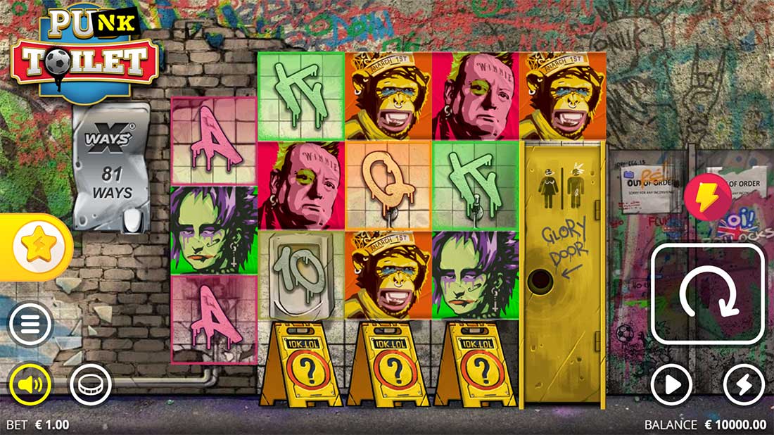 Punk Toilet offers P!ss Spins and Sh!t Spins, each with unique modifiers and big win potential.