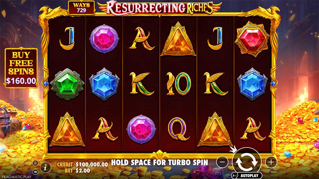 The slot is built around the mystical legend of the phoenix. The backdrop glows with fiery textures, symbolizing rebirth and power, while the reels are decorated with sparkling money symbols, mystery icons, and flaming animations. Each spin feels tense and dramatic thanks to strong sound effects and a soundtrack that rises with the action. Pragmatic Play is known for its polished presentation, and Resurrecting Riches is no exception—it’s one of their most visually striking video slots in the mythological genre.