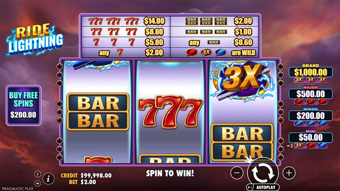 Ride the Lightning is the ideal choice for players who enjoy classic slots with modern twists. The 3×3 format makes it accessible and easy to follow, while the combination of jackpots, multipliers, and high volatility ensures every spin is charged with excitement.