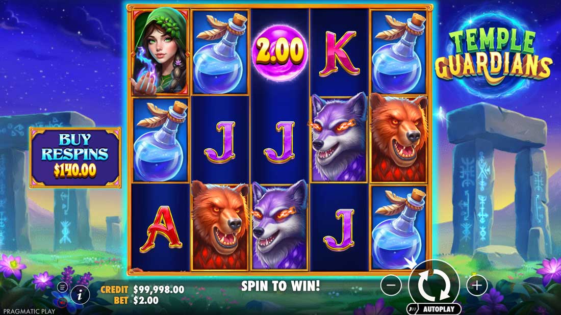 Temple Guardians radiates mystical charm — a fantasy realm where ancient protectors guard enchanted riches. Set against moonlit ruins and glowing runes, the reels pulse with color as mystical orbs and spirit animals come alive.Every spin feels like a step deeper into a sacred temple, with atmospheric music, magical effects, and crisp, high-detail artwork reinforcing the sense of power and mystery.