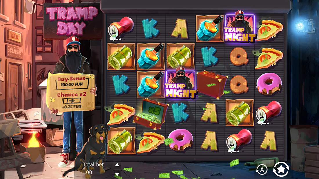 Tramp Day is a highly volatile slot, promising great wins, especially in the Free Spins feature. The unique topic and interesting mechanics make this game outstanding and quite different from other slots. That's a brand new experience for players.