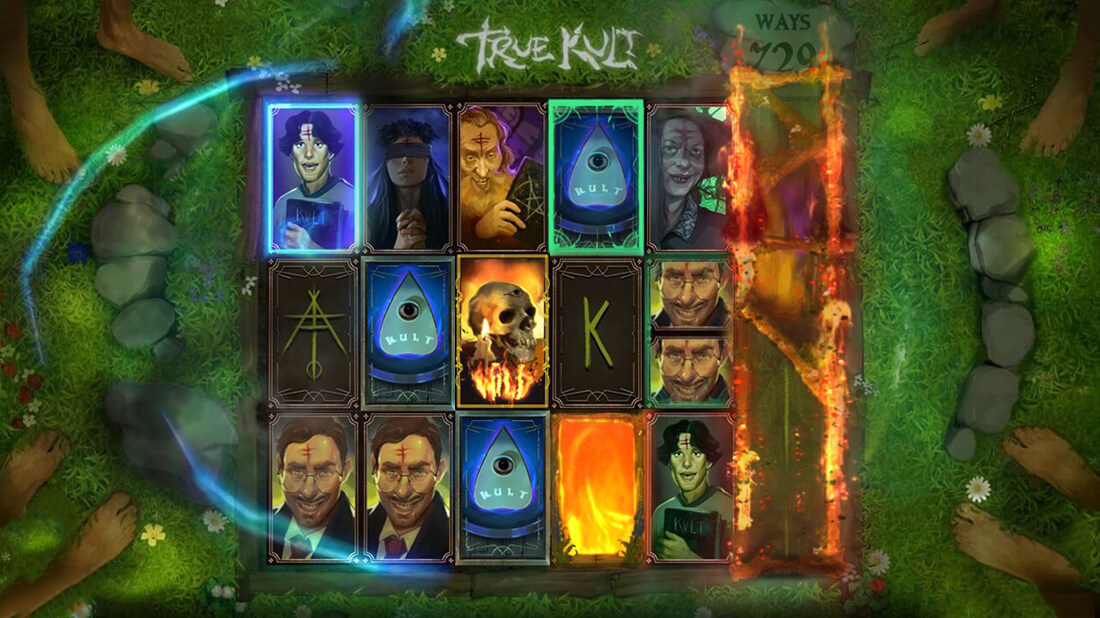 The RTP of the Kult is 96.06%, average for the slots. True Kult symbols are perfect for darker themes and include mysterious objects plus occult adept signs. There are high-paid symbols represented by the main characters of a cult and sacred elements, as well as others much more classic that represent muffles with eerie runes. Those wilds and scatter symbols will help you increase your wins and unlock unique features.